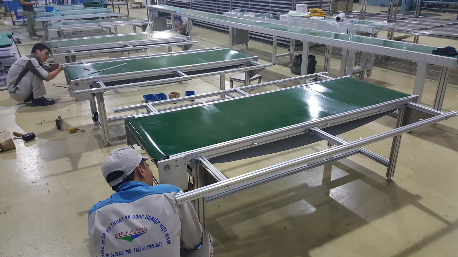 Trên tinh thần quán triệt trên công ty chúng tôi đã mạnh dạn đầu tư dây chuyền công nghệ cao chuyên sản xuất các loại băng tải công nghiệp chuyền dùng để tải hàng hóa với đủ mọi tải trọng khác nhau, tùy theo yêu cầu của quý khách hàng mà chúng tôi sẽ thiết kế và chế tạo loại băng tải với tải trọng cho phù hợp với đối tượng sản phẩm ví dụ như: linh kiện điện tử, hàng tiêu dùng như quần áo, giày da, sản xuất xi măng, cát đá v.v...
