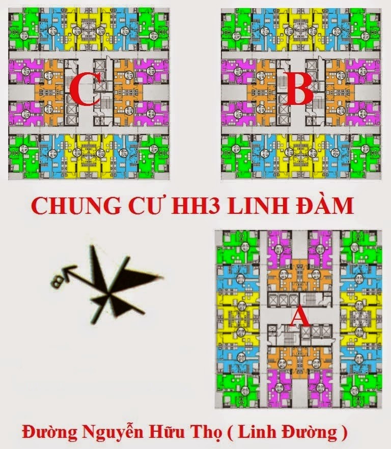 Thiết kế tổng thể 3 tòa A, B,C chung cư Hh3 Linh Đàm