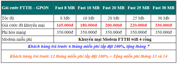 • quý khách trả trước 6 tháng cước sẽ không tính tiền 100% phí lắp mạng + cước phí 6 tháng