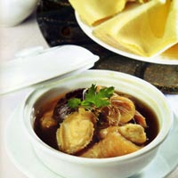 Đun sôi nước dùng gà trong nồi đất, cho bóng cá, đùi gà, gân heo, bào ngư vào, nêm sơ ít gia vị, đem chưng cách thủy cho vừa mềm