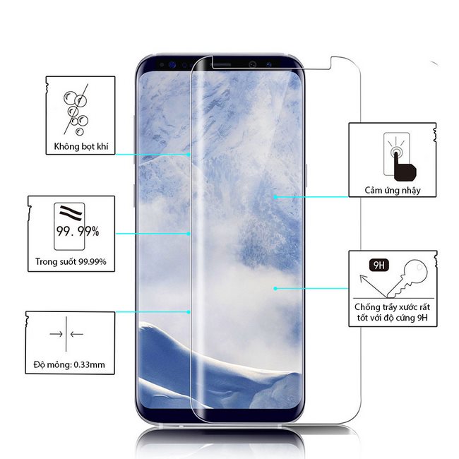 Kính cường lực Full keo Galaxy S9 + Plus Rockymile dùng tia UV công nghệ mới nhất 2018: