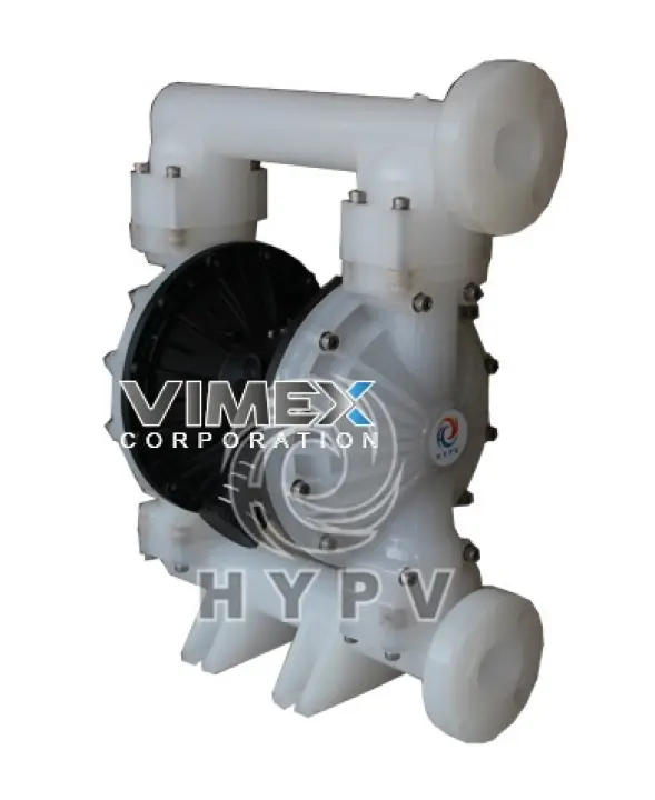 Máy bơm màng HY40N-PP PP TF TF là loại bơm màng khí nén có thể bơm linh hoạt, thường được dùng bơm những mẫu chất lỏng có thuộc tính phức tạp, chuyên dùng bơm hóa chất có tính ăn mòn cao, một vài dòng axit, bazo mạnh. dòng bơm này có thể chạy khô và đc ứng dụng phổ biến trong công nghiệp hiện nay. Bơm màng HY40N-PP PP TF TF có kết cấu vỏ nhựa, màng bơm teflon và hiện nay đã đc sản xuất hàng hiệu tại doanh nghiệp TNHH Vimex.