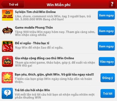 Nhanh tay TAI IWIN MOI NHAT về điện thoại và tham gia nhiều sự kiện bất ngờ và nhận Win miễn phí nào.